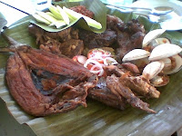 The "Bilao"... a mix of traditional Pinoy fare. There's daing na bangus, baked clams, dried chicken adobo wings, inihaw na baboy (i love the taba!), grilled longganisa, and green mangoes with bagoong. It's a hypertensive feast that I can devour with three cups of rice... BURP!